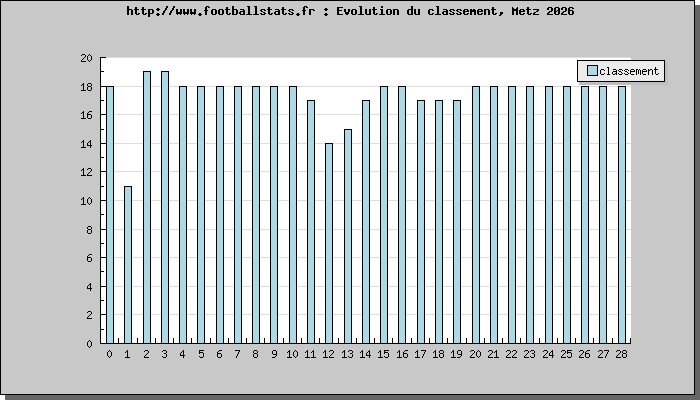 Le meilleur classement de la saison de Metz est 11ème. Son plus mauvais classement de la saison est 19ème.